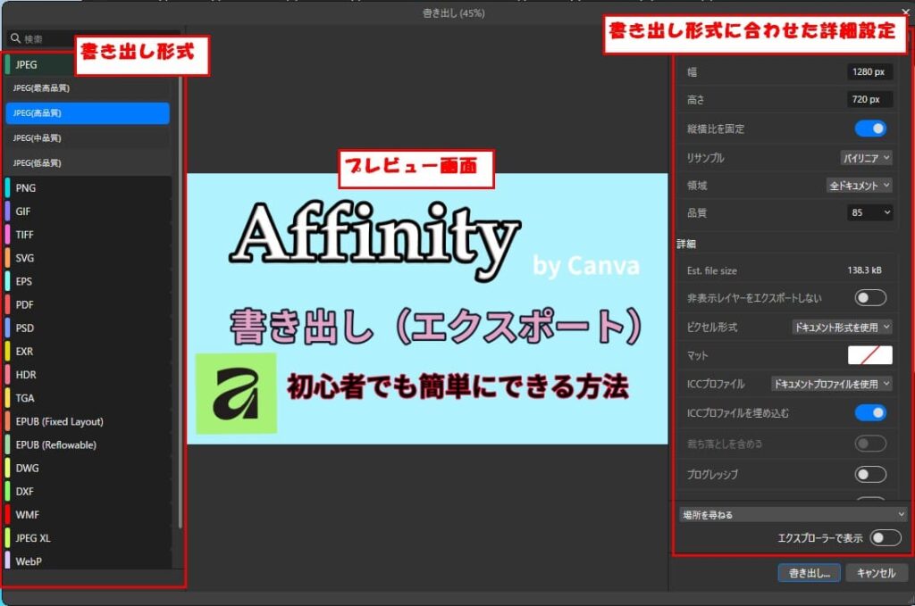 まとめ:Affinityの書き出しは「自由自在」