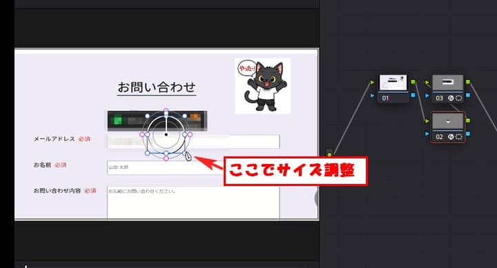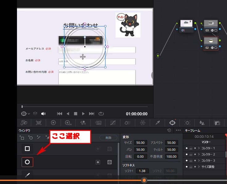 次は丸いモザイク範囲を作成して 猫の画像に反映してます。