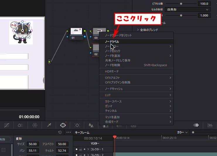 ノードを選択して右クリックします。