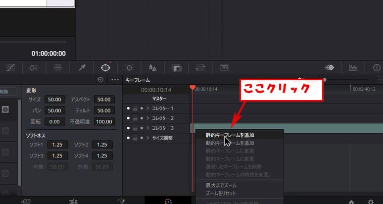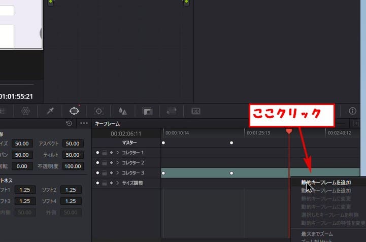 右クリックして静的キーフレームを追加をクリックします。