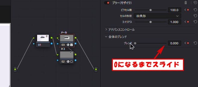 次にブレンドの値が1になるようにスライドを右に動かします