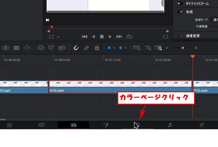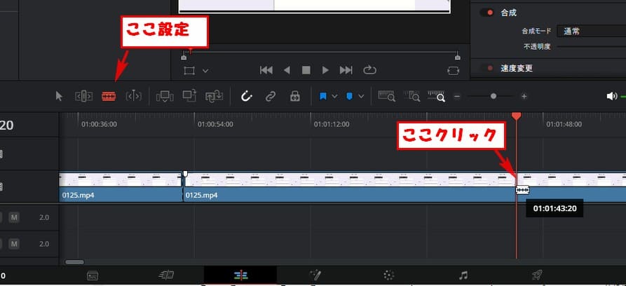 エフェクトページでモザイクをかけたい部分の最初と最後をカットします。