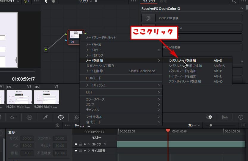 ノードを追加シリアルノードを追加をクリックします。