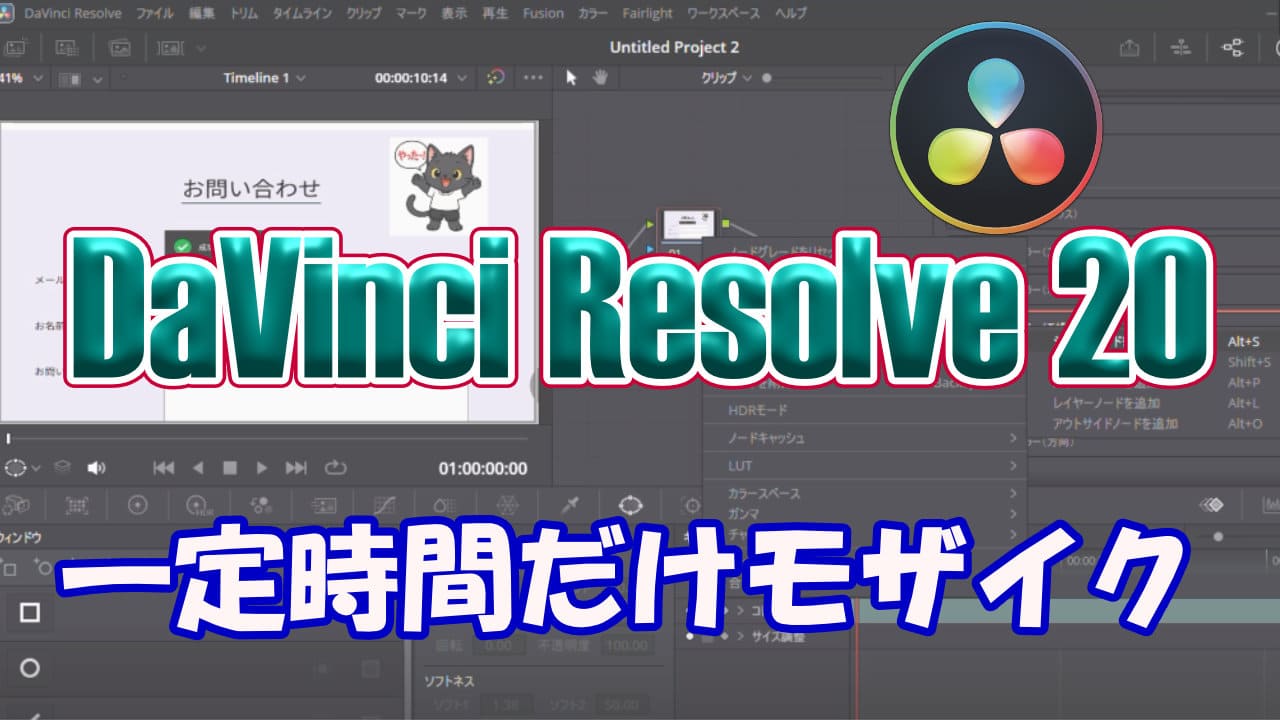 今回はDaVinci Resolve20で動画の一定時間内だけモザイクをかける方法を記事にしました。